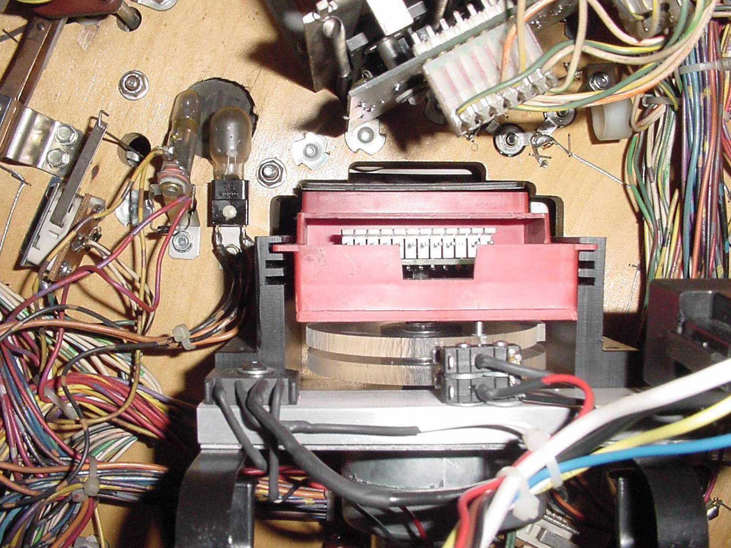 Success! After choosing smaller switches and remaking the mounting bar, this unit works! I made a harness for it too. The parts came in JUST in time to wire it up for the Pinball convention. The pictures below are close to what you get in the kit. Beta one will actually be more accurate to the end product as it wont have all the extra holes and slots as Alpha one. You can see some of the extra slots in this picture. The original unit uses a separate relay board, but our unit will be self-contained with the relay and rectifier to run the motor mounted on the switch bar. We have mounted it in on the playfield and it all fits. The only issue left is the motor speed. Although the original motor was 12 RPM and my motor is 12 RPM, my motor is running raster that the original prototype when you see them run side by side. The addition of a 100-ohm power resistor should slow it down to the correct speed… Off to Radio Shack