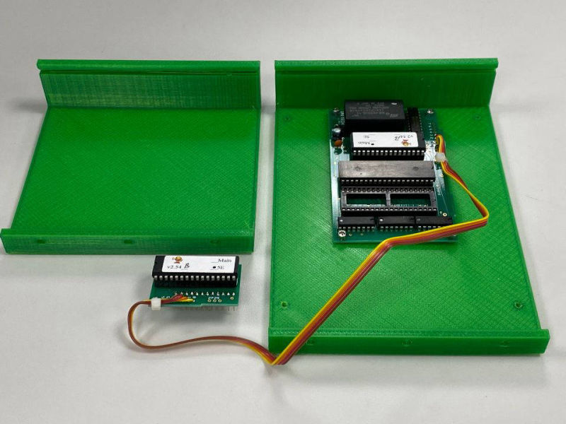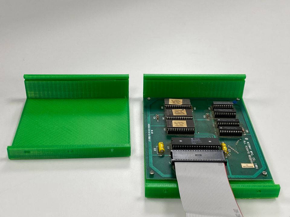 Printed in two parts because of its size, and bolted together with 6-32 bolts. The PC boards be at a stock midway board, aThe PC boards be at a stock midway board, or the Mike doll add on the kit, gets mounted with 4-40 bolts
