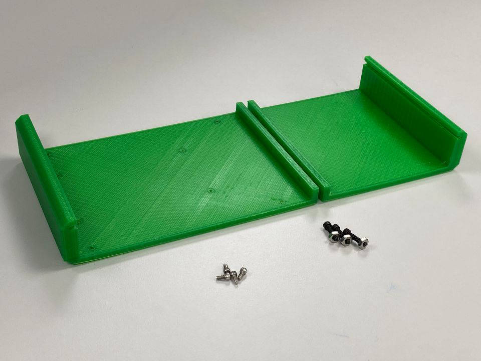 The slots on the side of the frame snugly hug the midway PC board allowing it to stay in place without hardware. Printed in PCB board Green😀