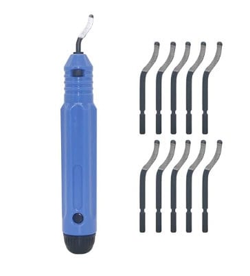 The burr remover kit comes with high quality rubber NB1100 handle which provides comfortable and secure grip. Also includes 10 PC SHSS BS1010 deburring blades
