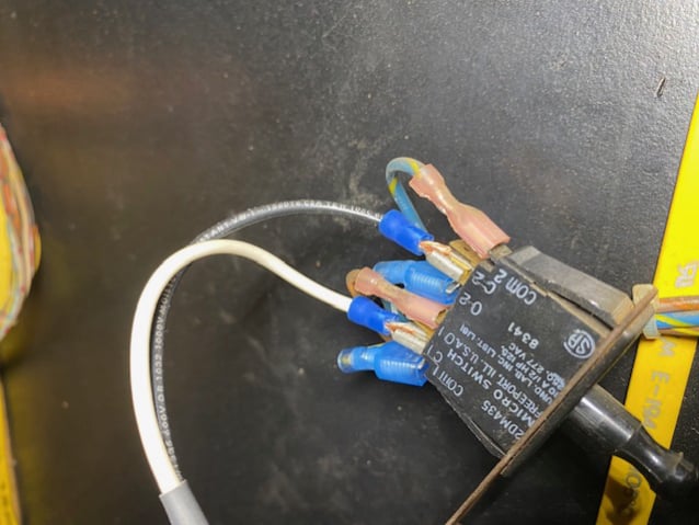 The procedure is pretty straightforward with the exception of where to tap in for 115v power. My solution to this was to tie into the safety switch as both hot and neutral are switched at this point. For those who need to know and might want to do the same blue white blue white is hot where the brown wire is neutral.